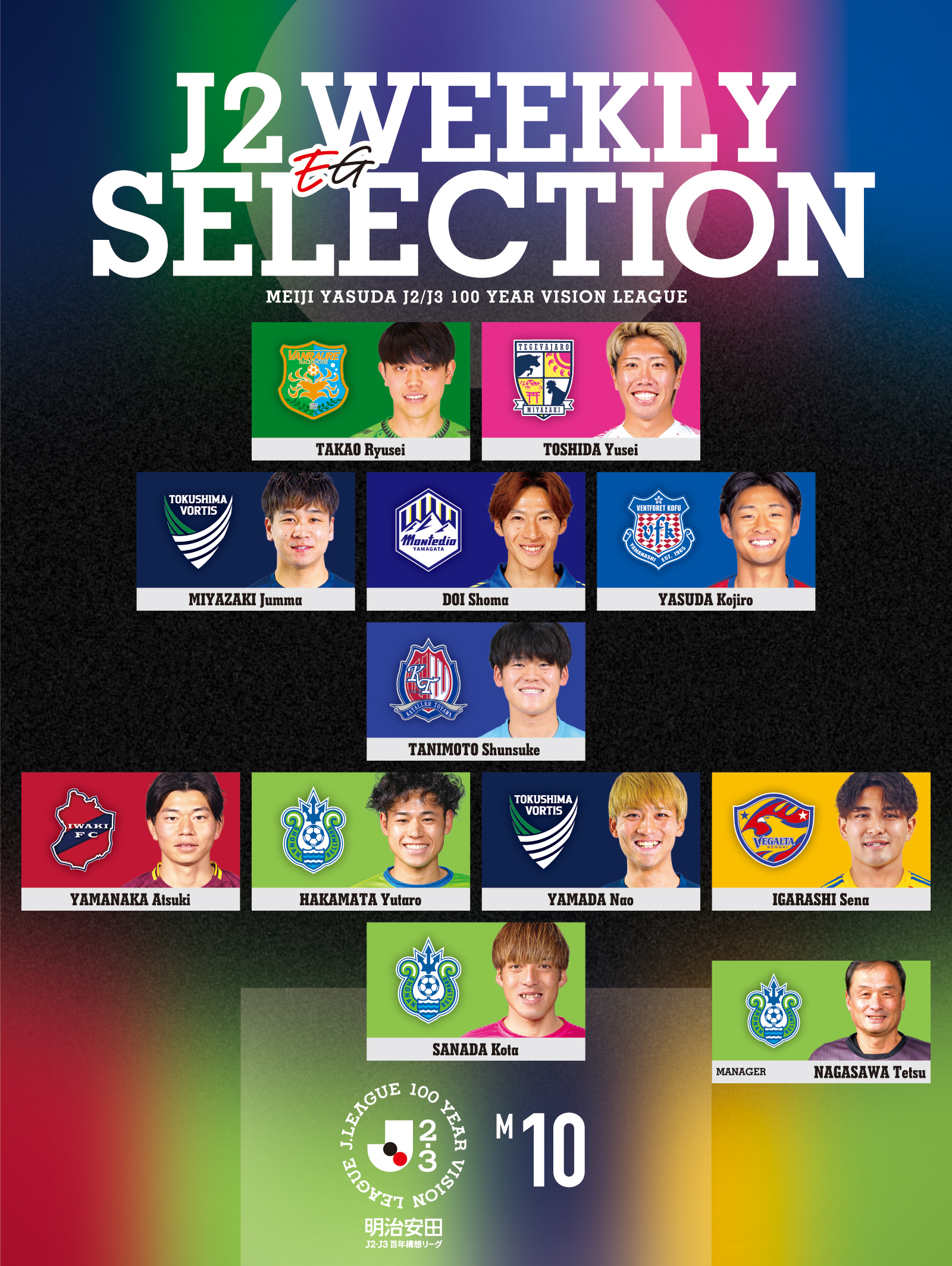 WEEKLY EG SELECTION M10明治安田J2・J3百年構想リーグ各節ベストイレブンとMVP、最優秀監督を表彰する『WEEKLY EG SELECTION』。「エル・ゴラッソ+J2版」では、“J2クラブ勢の中で”、ひと際輝いた選手を選んでいく。4月11日、12日に行われた第10節からは、この男たちを選出した。