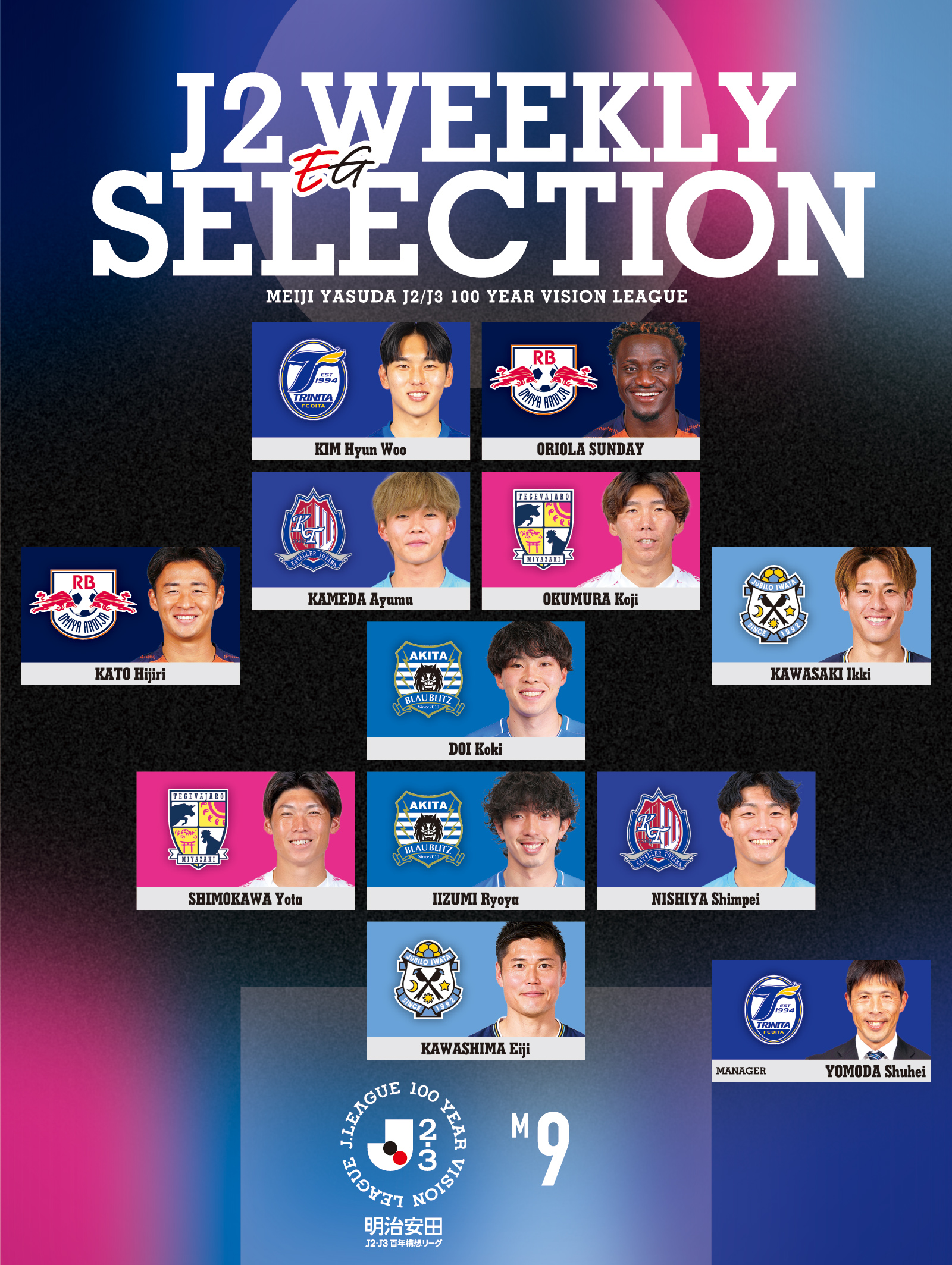 明治安田J2・J3百年構想リーグ各節ベストイレブンとMVP、最優秀監督を表彰する『WEEKLY EG SELECTION』。「エル・ゴラッソ+J2版」では、“J2クラブ勢の中で”、ひと際輝いた選手を選んでいく。4月4日、5日に行われた第9節からは、この男たちを選出した。