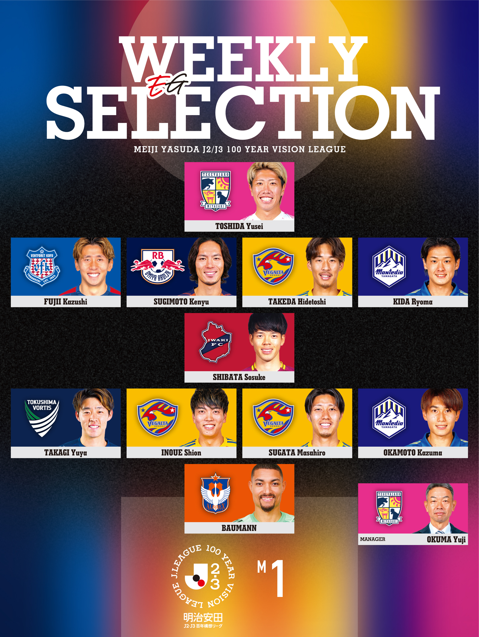 明治安田J2・J3百年構想リーグの各節ベストイレブンとMVP、最優秀監督を表彰する『WEEKLY EG SELECTION』。この「エル・ゴラッソ+J2版」では、“J2クラブ勢の中で”、ひと際輝いた選手を選んでいく。2月7日、8日に行われた第1節(降雪・積雪の影響で中止となった3試合は除く)からは、この11選手と監督を選出した。
