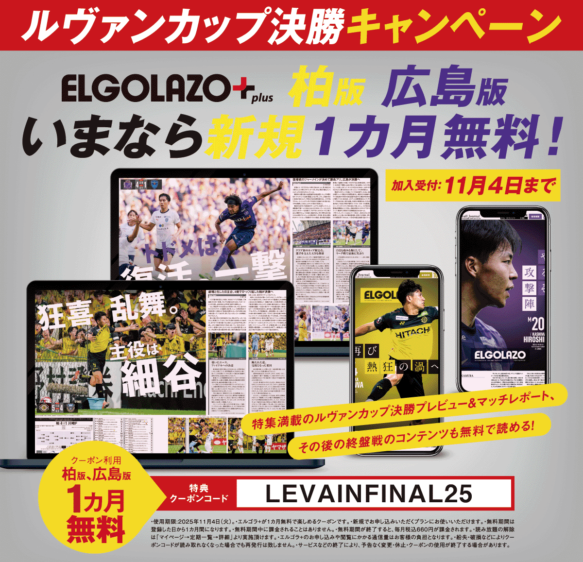 - エルゴラ+が1カ月無料で楽しめるクーポンです。