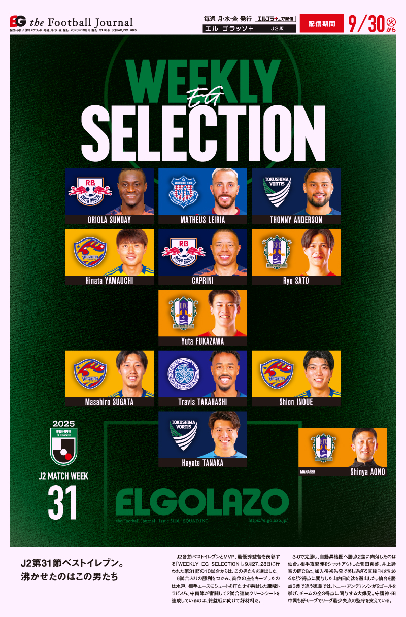 3116 J2 2025年09月30日発行 販売価格 ¥180 税込 読み放題でお得に読む or ログイン 電子版を購入する お気に入りに追加 カートに追加しました。 お買い物を続ける カートへ進む WEEKLY EG SELECTION J2 MATCH WEEK 31 [明治安田J2第31節EGセレクション] [明治安田J1第32節EGセレクション] [水曜連載]