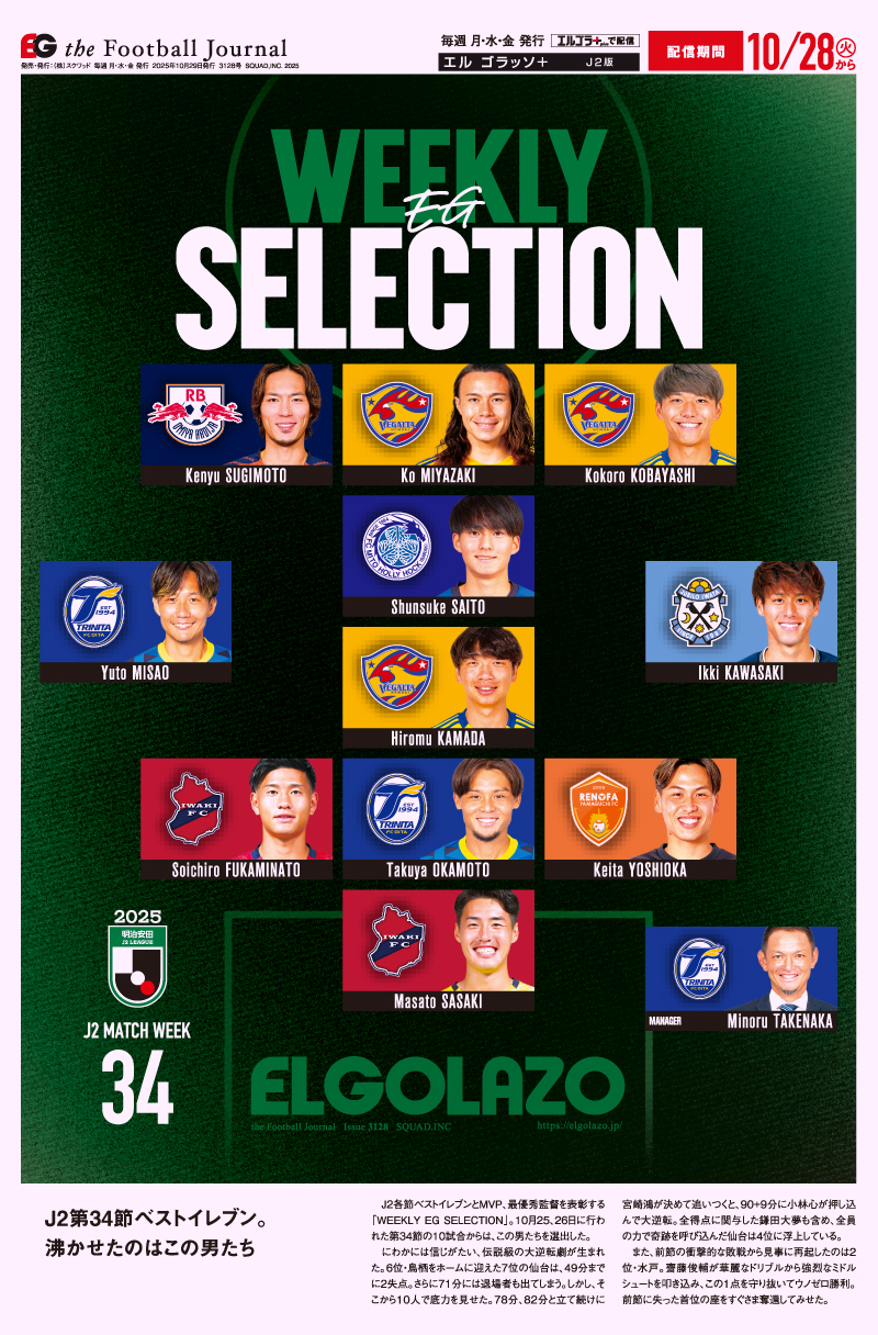 3128 J2 2025年10月28日発行 販売価格 ¥180 税込 読み放題でお得に読む or ログイン 電子版を購入する お気に入りに追加 カートに追加しました。 お買い物を続ける カートへ進む WEEKLY EG SELECTION J2 MATCH WEEK 34 [明治安田J2第34節EGセレクション] [明治安田J1第35節EGセレクション] [水曜連載]