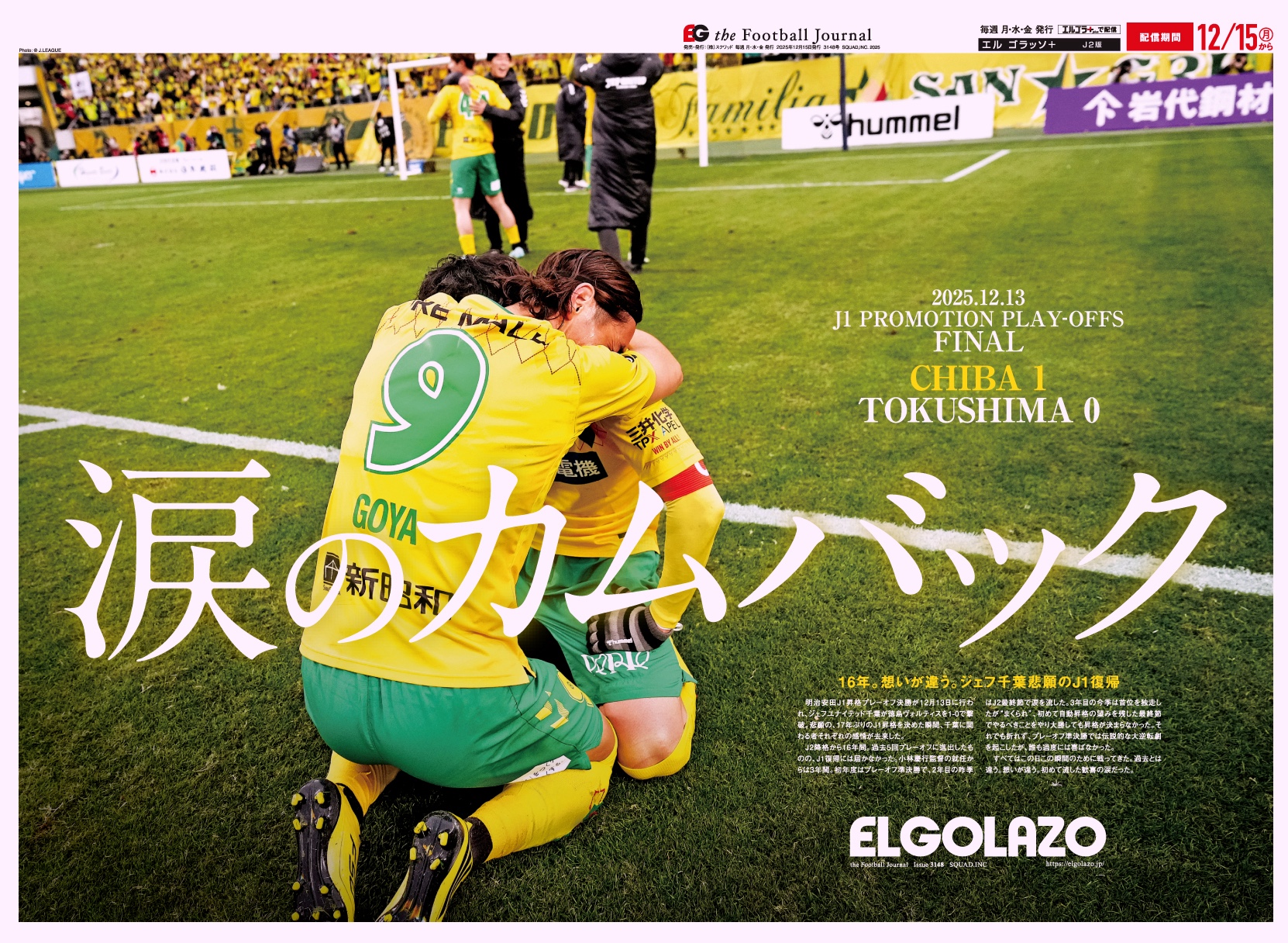 3148 J2 2025年12月15日発行 販売価格 ¥180 税込 読み放題でお得に読む or ログイン 電子版を購入する お気に入りに追加 カートに追加しました。 お買い物を続ける カートへ進む 涙のカムバック [昇格コラム] [明治安田J1昇格プレーオフ決勝 マッチレポート] 千葉×徳島 [J2シーズンレビュー] 徳島 磐田 大宮 仙台 鳥栖 いわき 山形 今治
